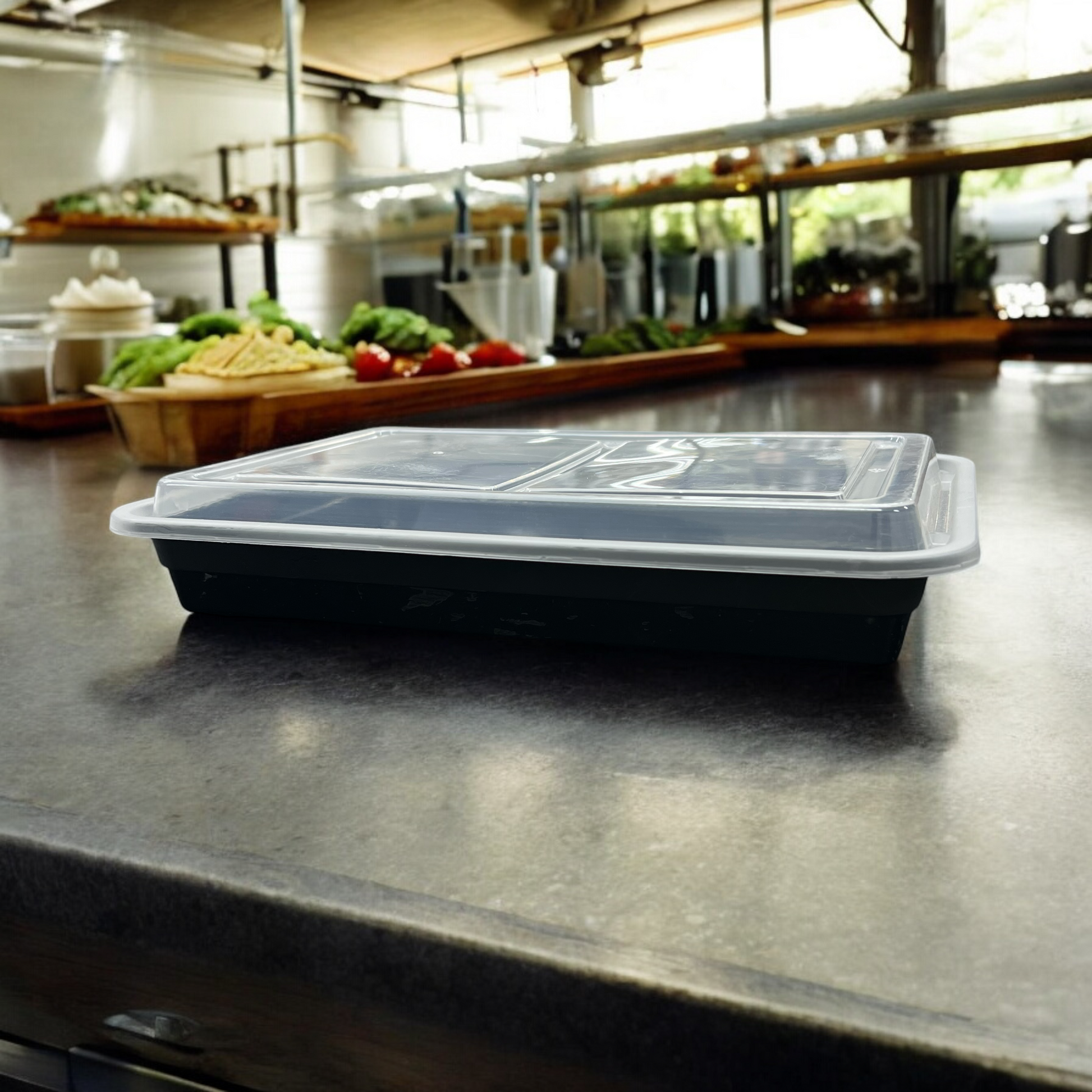 Polypropylene 1 Compartment Rectangular COMBO, Black/ Clear, 58oz 150/PCS